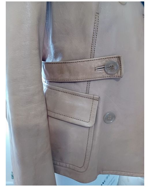 Get ready to add a touch of elegance to your wardrobe with this women's Designer Real Goat Nappa Leather Jacket in size 4. Crafted from high-quality italian leather, this short jacket is perfect for any occasion. The beige colour and satin lining material give it a stylish and sophisticated look that is sure to turn heads. Never worn. This was a gift. With its regular size type and XS size, this jacket is tailored to fit comfortably and flatter your figure. The jacket is ideal for women who want to make a statement with their fashion choices while staying comfortable and stylish. Whether you're dressing up for a night out or running errands during the day, this Real Italian Nappa Leather Jacket is the perfect addition to your wardrobe.