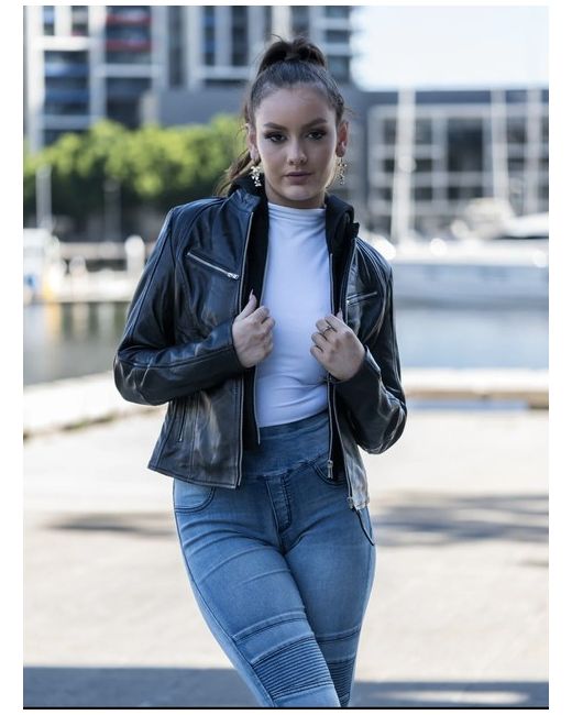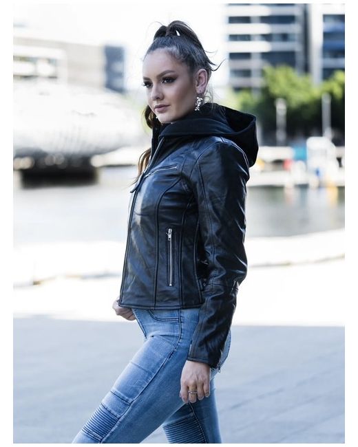 Ladies Real Leather Jacket Size M. Size Medium. The leather is REAL sheep leather. Comes fresh from leather factory. Basic leather jacket style, with soft cotton hoodie.