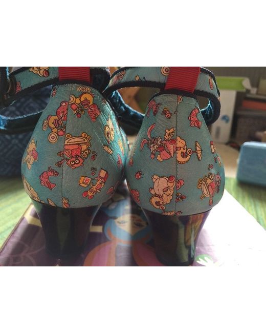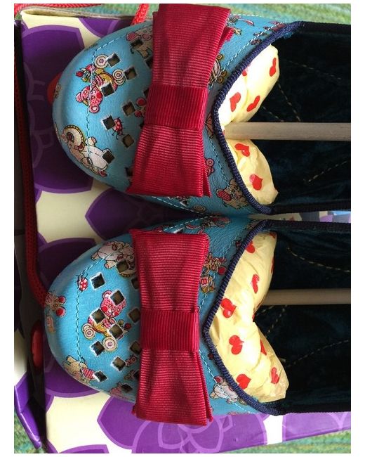 Adorable funky blue leather shoes with cartoon print- see photos for details. In mint condition. Selling due to house move and problem feet- can't wear heels anymore. Irregular Choice make very unusual shoes- I have a small collection up for sale. Check out my other items x