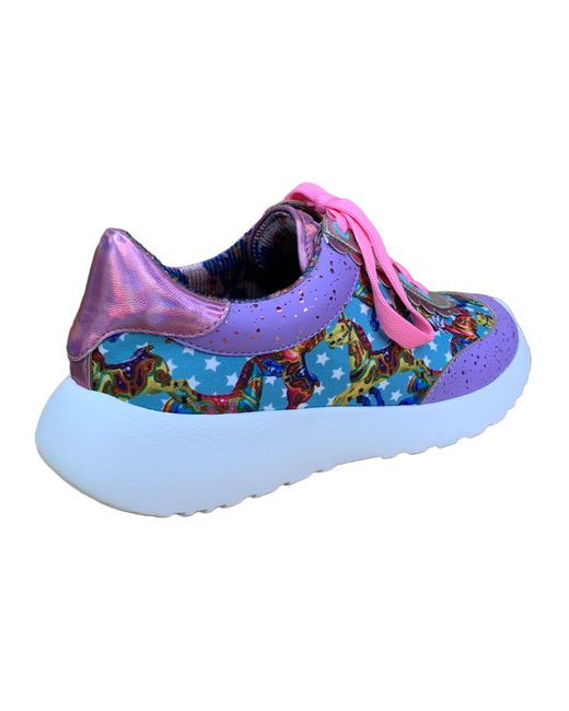 These playful trainers feature a white star on baby blue with carousel horse print that are sure to make you stand out in the crowd. Lace 'em up and get ready for a ride you'll never forget! Lace Up Lightweight Star and Carousel Horse Print.