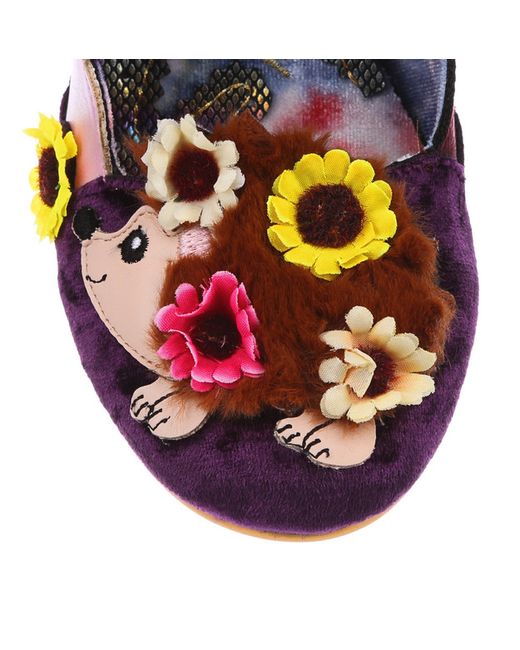 A wearable low heel is encrusted in fuchsia glitter for that extra bit of sparkle, accenting the turquoise and pink tones of the upper! Perfect to bring a smile to anyone's face! Have a magical adventure in the hedgerows with gorgeous posies, enchanting mushrooms and a little hedgehog friend!