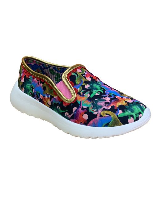 With a black with white polka dot print with all over dinosaurs, these trainers will add a quirky touch to any outfit - get your feet on them and hit the ground running! Slip On Lightweight Dinosaur Print.