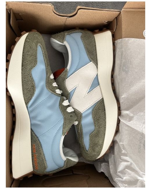 Brand new new balance 327 Light blue khaki NB trainers Part suede canvas Come swi th original packaging and box