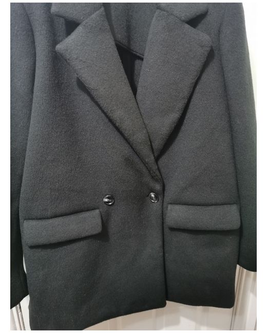 Women's Black Oversized Double Breasted One Button Pea Coat M