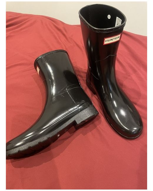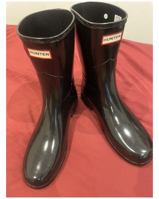 Hunter® Refined Tall boots bring out the fashionista in you. Man-made upper. Textile lining. Textile insole. Pull-on closure. Branding on front. Removable insole. Closed toe silhouette. Man-made outsole. Product measurements were taken using size 7 UK, width M. Please note that measurements may vary by size. Measurements: Weight: 1kg Circumference: 13 in Shaft: 9 1⁄4 in Boots are new (never worn) with light scuff marks due to rubber material. Will suit slimmer feet better.