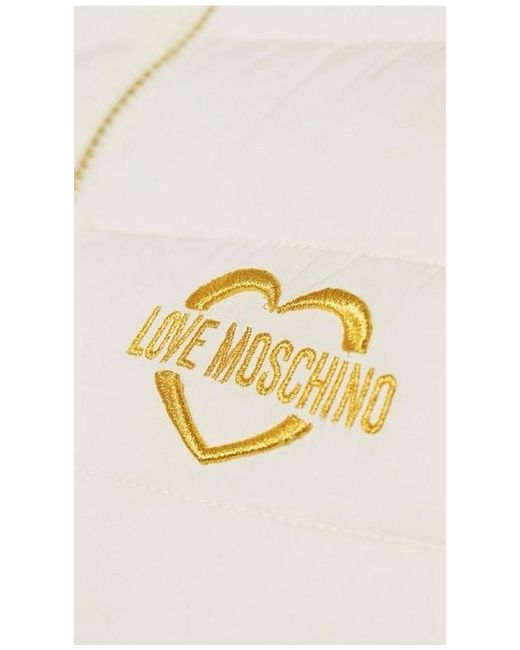 LOVE MOSCHINO Belted Padded Jacket - White Size & Fit True to size - order your usual size Regular fit Model is 5'9", a standard size UK 8 Details Belted Padded Jacket by Love Moschino White Get ready for chillier days with this padded logo jacket, a sporty style that's perfect for weekend wear - layer over a simple tee and team with straight leg jeans and trainers for a cool off-duty look Made from quilted fabric with padding for lightweight warmth Embroidered Love Moschino branding to the chest High neckline Centre front two-way zip closure Belt fastening to the waist Pockets at the waist Long sleeves with ribbed cuffs Regular fit through the body Material 100% Polyester