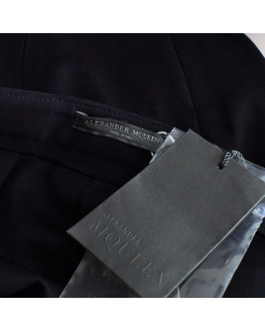 Alexander McQueen Trousers Alexander McQueen Black TrousersColour: BlackMade in ItalyMaterial: 100% wool. Lining 100% cupro.Alexander McQueen tailored-fit trousers in blackA cropped tapered leg with split to the back of hemZip and button fastening to waist.