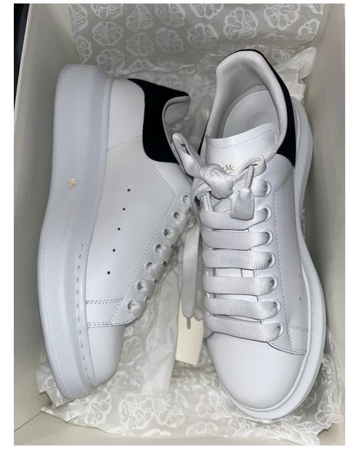 Alexander McQueen Black & White Trainers – Size 6 Stylish black and white Alexander McQueen trainers in great condition. Worn only once indoors, showing minimal signs of wear. One lace has a few small marks, which are clearly shown in the photos. Comes with the original box and dust bag. Please note, the box has a visible mark (also shown in the pictures). Size: UK 6 Condition: Gently used, excellent overall
