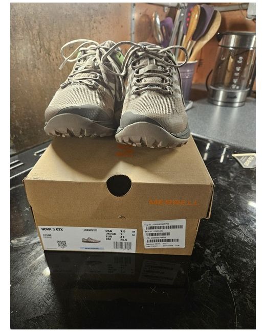 Says mens on the box but more unisex Stone colour with Green highlights Tried on only but unable to return GORE-TEX® waterproof membrane, exceptional breathability and waterproof performance Padded collar External rear sling locks in the heel Cleansport NXT™ treated for natural odour control From smoke free home Any questions please ask