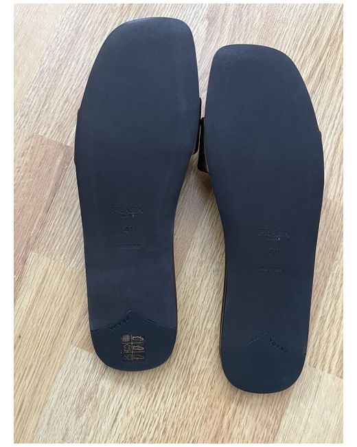 Prada flat slides with sleek design enriched by the sophisticated satin finish that gives the footwear refined allure. The sleek silhouette with a square toe is completed by the iconic signature of the enameled metal triangle logo. Enameled metal triangle logo Monoblock leather sole, 5 mm, with hot-stamped logo Satin-covered insole Comes With Dustbag & Box! New & Never Worn UK 8 / EU 41