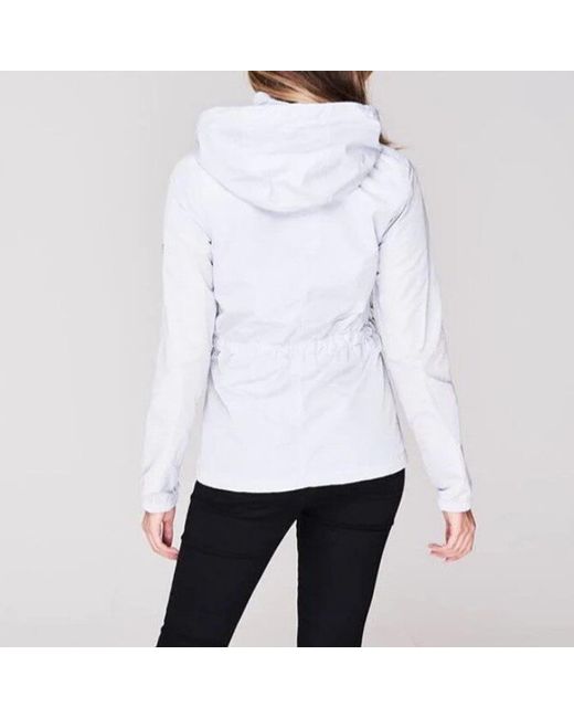 Barbour Curveball Showerproof Jacket. The Curveball Showerproof Jacket from Barbour International features a front zip closure, press stud fastening, toggle adjusted hood, six pockets, tie waist, and elasticated cuffs.