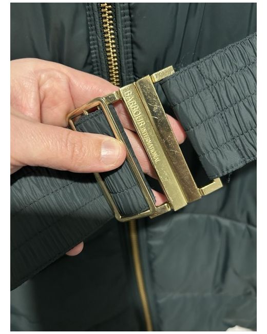 Barbour International Match Quilted jacket. Cut from and fully lined from an insulating polyamide, this long length quilted jacket promises a warm and cosy feeling and includes a detachable faux fur hood for maximum coverage and protection when it is needed.