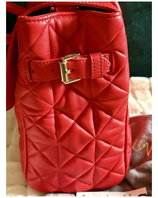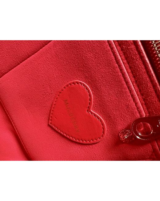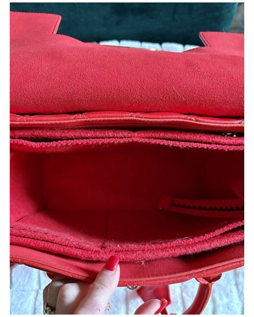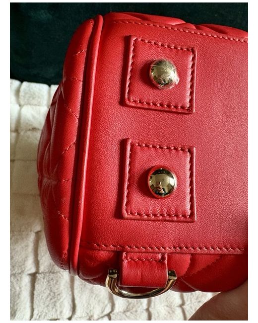 Mulberry quilted Cara Delevingne handbag in gorgeous Fiery Spritz red. Gold feet on bottom of bag (one still has protective plastic on). Height 24cm, width 30.5cm, depth 15cm.