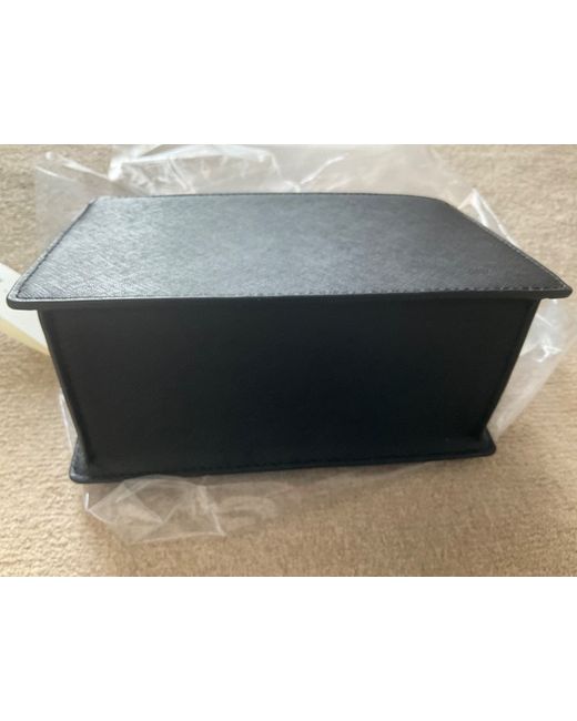 Chain strap can be worn cross-body or as shoulder. Black saffiano-style leather bag.