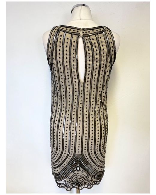 New Ltd Edition Beige Black Beaded Sequinned Dress 10