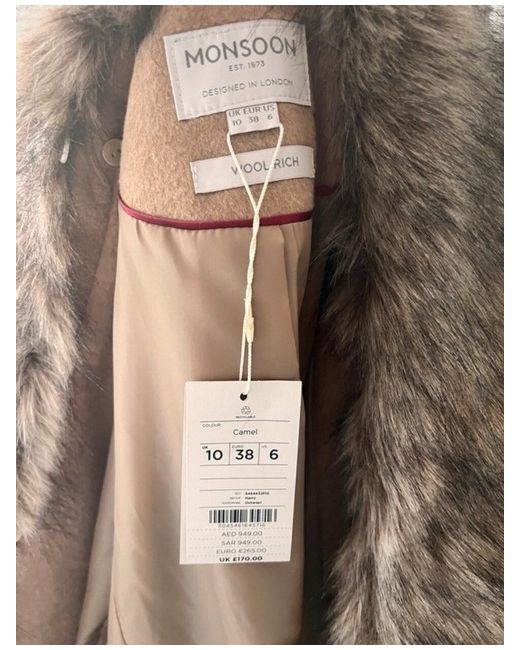 RRP: £170 Beautiful camel coat with detachable faux fur collar. Double breasted. Fully lined.
