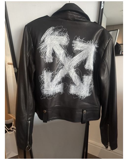 This Off White Woman Leather Jacket is a stylish and versatile addition to any wardrobe. Made from high-quality leather with a softshell fabric type, it features a short length and a regular fit suitable for a party, cocktail, or casual occasion. The jacket is accented with buttons and has a biker theme, making it perfect for the winter and spring seasons. With its lightweight design and polyester lining, this handmade jacket from Off-White is sure to make a statement in any woman's closet.