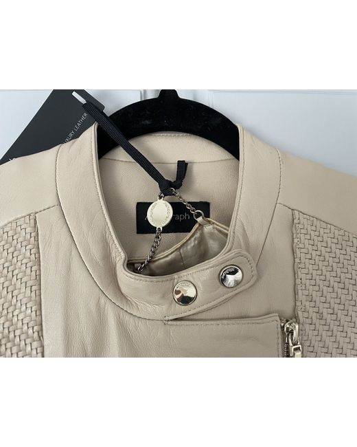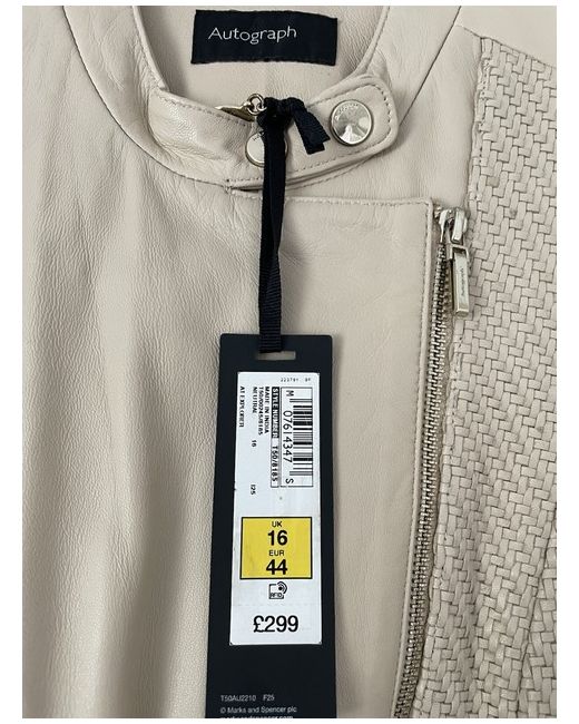 Marks And Spencer Autograph Leather Biker Jacket Calico 10 Rrp 250
