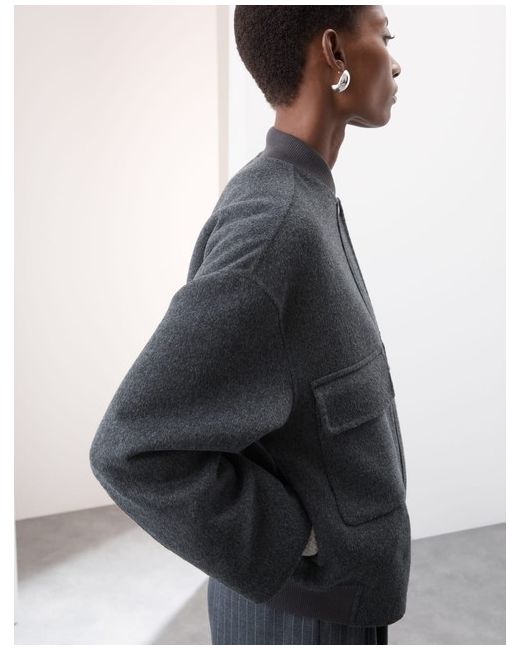 Marks & Spencer. Bring a smart touch to your casual wardrobe with this wool-blend bomber jacket from our Autograph collection. It's designed in an easy relaxed fit, with a comfy ribbed neckline. Material comp: 50% wool, 50% polyester Sleeve lining - 100% polyester Knitted ribbing - 98% polyester, 2% elastane Binding (trim on the edge of a product) - 55% polyester, 45% viscose.