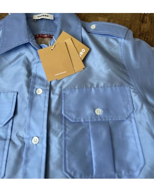 Ladies blue Sandro blouse with pattern on back. New with tags and sold by smoke free and pet feee household. Lovely blouse and only selling due to being a little tight on me.