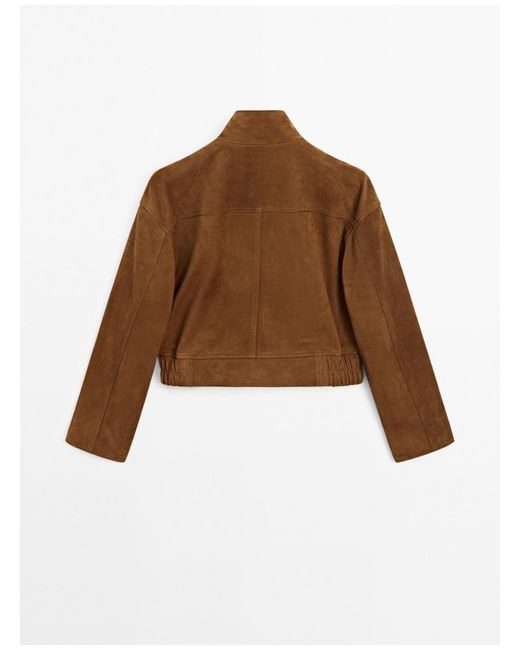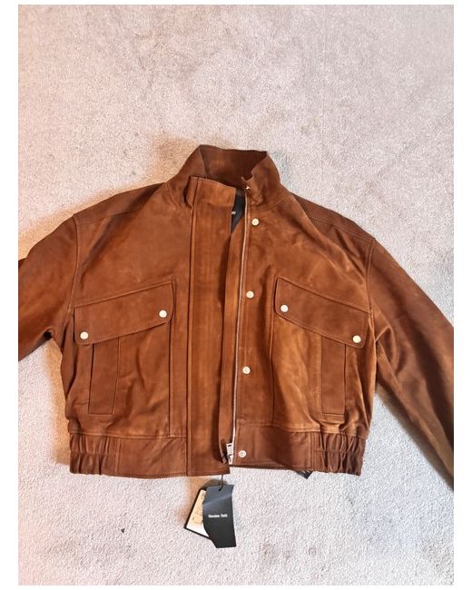 This Massimo Dutti leather jacket in size 10 for women is a stylish and versatile addition to any wardrobe. The short bomber jacket in a classic brown colour is made from high-quality leather, both on the outer shell and the lining. With its regular fit and sleek design, this jacket is perfect for adding a touch of sophistication to any outfit.