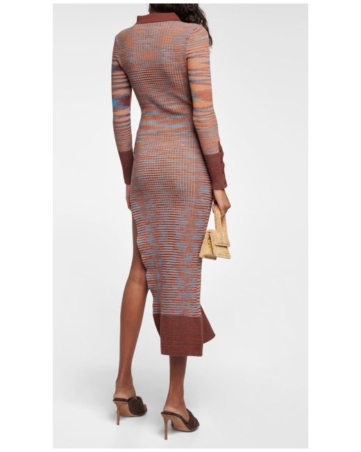Made from mid-weight knitted fabric. Material: 85% organic cotton/15% merino wool./ Slip on dress cut for a fitted silhouette. Armpit to armpit 12 inches. Waist 19 inches. Hips 23.5 inches. Length 49 inches. Thank you for looking.