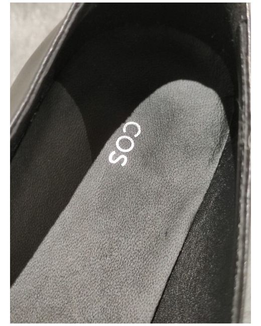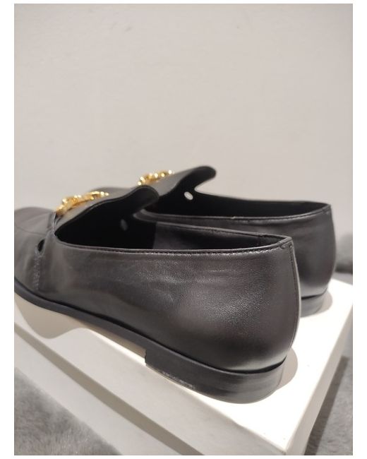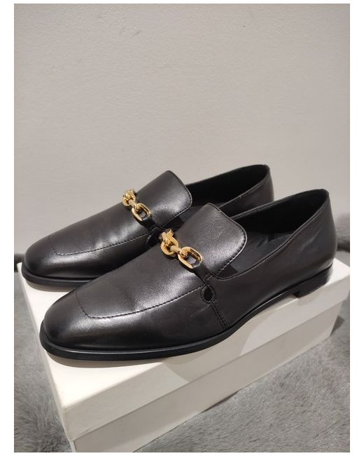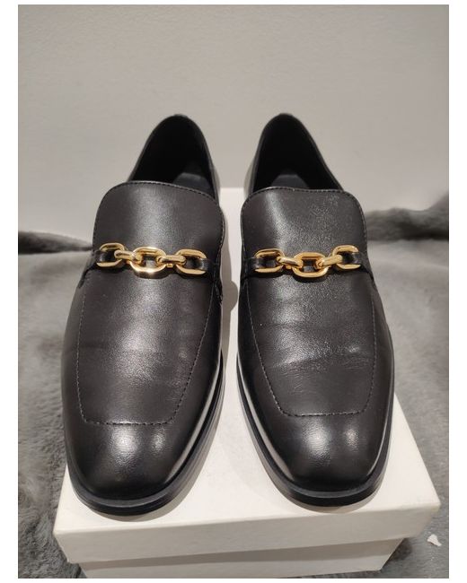 Women loafers 39 European size, COS black colour, gold details ladies leather shoes 6uk size