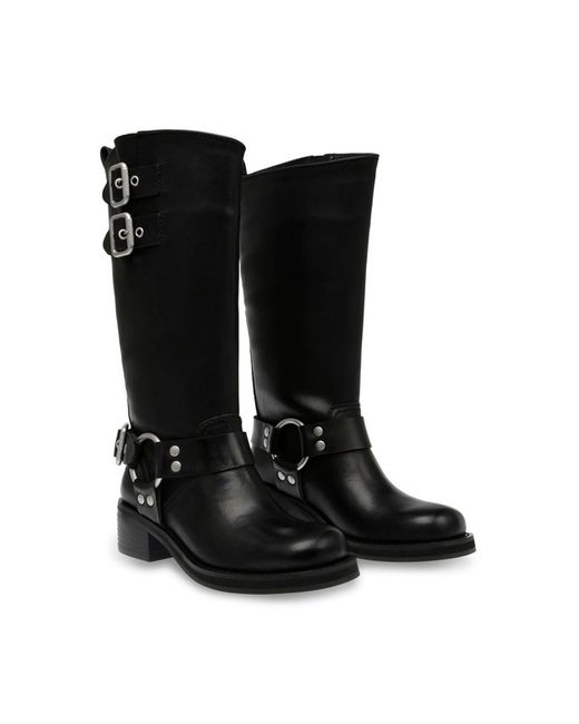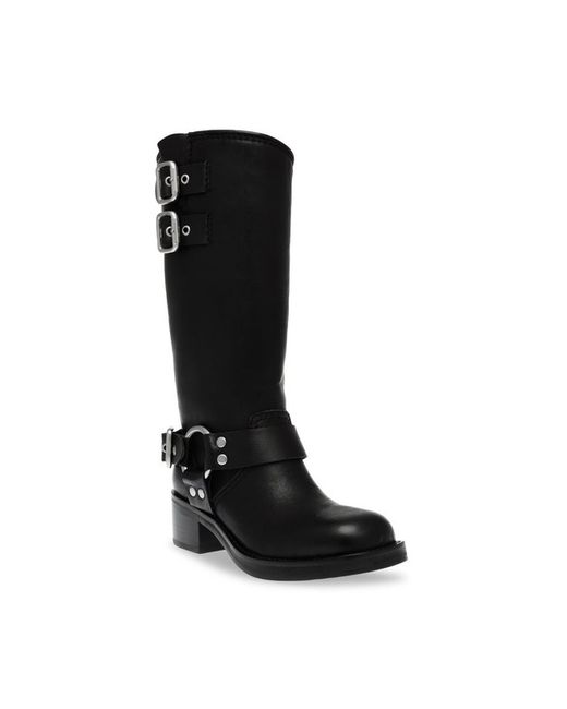The product is a pair of stylish Steve Madden Eastern Black high boots in UK size 9 for women. These boots are made of black leather and feature a high boot style, making them a fashionable and versatile addition to any wardrobe. Perfect for adding a touch of edgy sophistication to any outfit, these boots are a must-have for any woman looking to elevate her shoe collection.