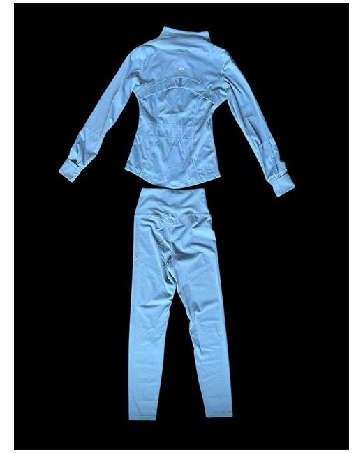 The Lululemon 2 Piece Set is a stylish and functional activewear set perfect for the summer season. This set includes a geometric blue top with long sleeves and a zip closure, paired with matching leggings in a blended fabric. Designed for athletic fit, this outfit is perfect for active women looking for comfortable and fashionable clothing. Ideal for any summer workout or casual outing, this set combines style and performance seamlessly.