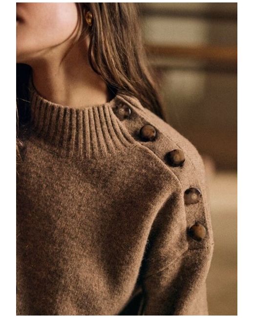 Trudy Jumper Mottled Grey Merino High Neck Gemstone Buttons