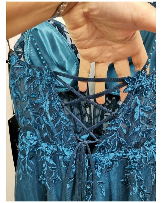 Be the bell of the ball in this stunning forest green Mascara Mc119511 evening dress. The tulle fabric is adorned with glitter, sequins, beading, and embroidery accents for a touch of sparkle. Boned corset.