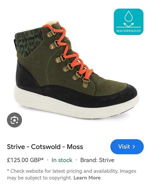 Arch Support. Waterproof leather. UK 5 standard width. Bellows Tongue to reduce potential for water seepage around laces. Features include:-.