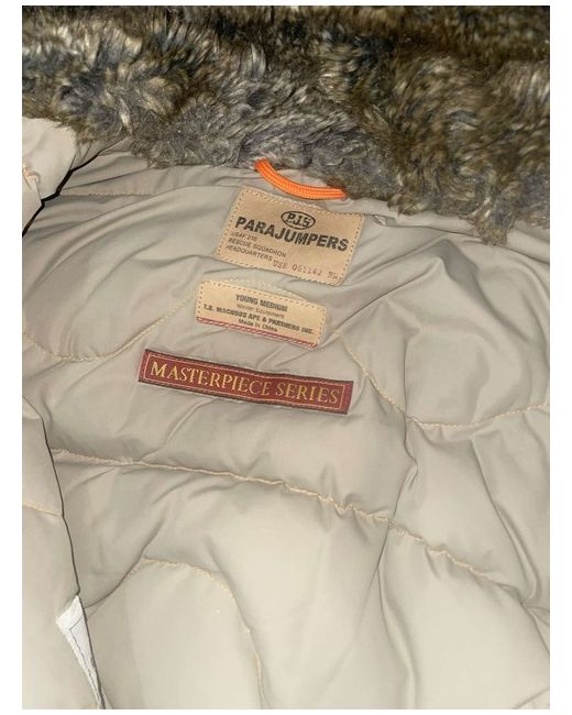This Parajumpers women's jacket is in a beige colour and is a puffer style. It is made from polyamide material and is in size XS. The jacket is designed for regular fit and is suitable for women.