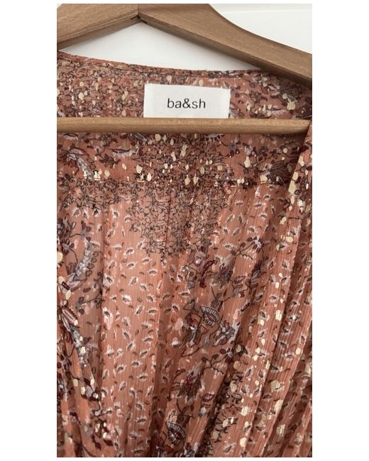 The BA&SH Oriane Wrap dress in pink is a stylish and elegant choice for women looking for a long dress for summer or spring occasions. The dress has gold metallic flecks making it particularly fetching when the light hits. This floral patterned dress features long sleeves and a wrap style, perfect for a party or cocktail event. The brand ba&sh is known for its quality and on-trend designs, making this dress a chic addition to any wardrobe. Available in size small (Size 1), this brand new with tags dress is a must-have for any fashion-forward woman.