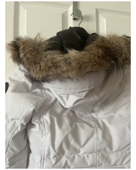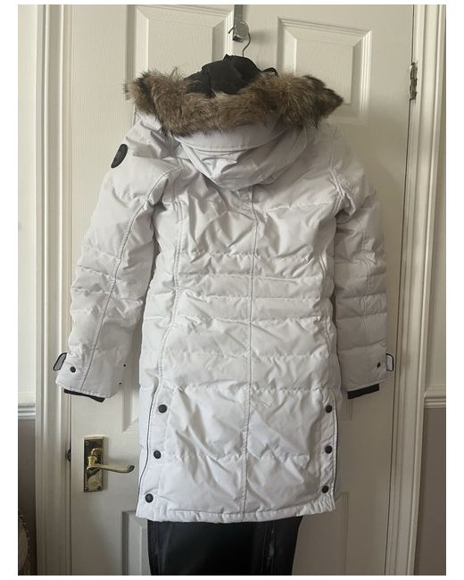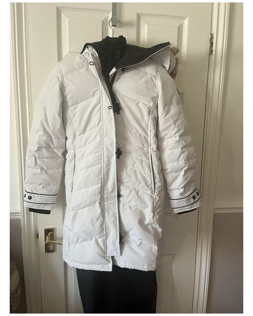 This Canada Goose 3/4 length coat with black trim in size XS is a stylish and luxurious addition to any wardrobe. The coat features a quilted design with a white colour that adds a touch of elegance. Made from high-quality fur, it is perfect for keeping you warm and fashionable during the colder seasons. The regular fit and branded detailing make it a standout piece for women looking for both style and functionality in their outerwear collection.