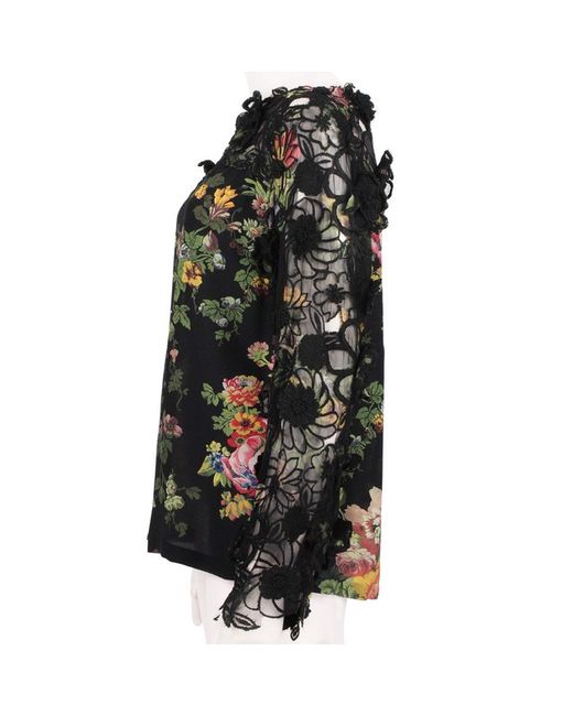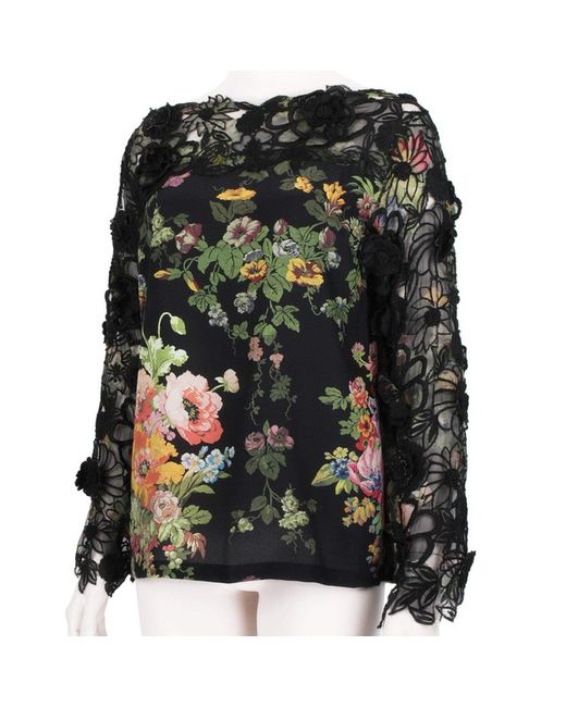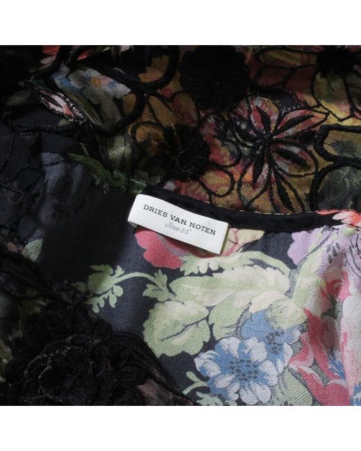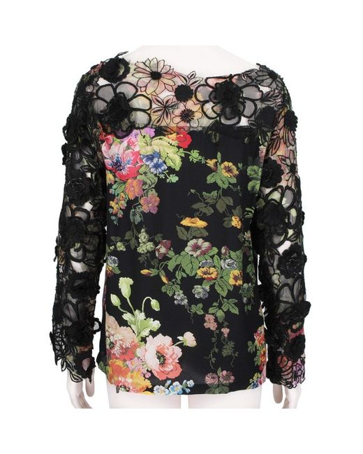 Dries Van Noten 3D Broderie Anglaise Top. Dries Van Noten luxurious floral silk chiffon top. Sheer broderie anglaise detailing to the upper top and sleeves. Cut for a classic fit. © Renascence. Elie Saab Earring.