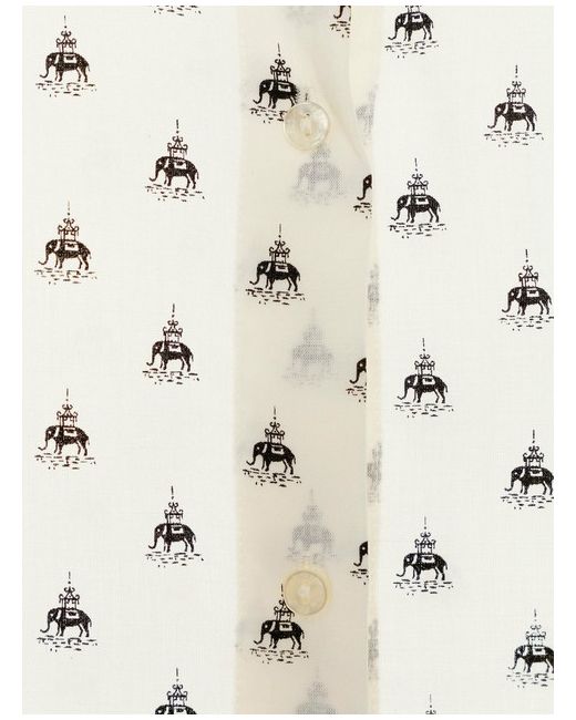 A signature long sleeve button down blouse with an allover print is cut in a boxy silhouette for a polished yet laid back look. - Spread collar - Long sleeves - Front button closure - Allover print - Back yoke - Curved hem - Approx.