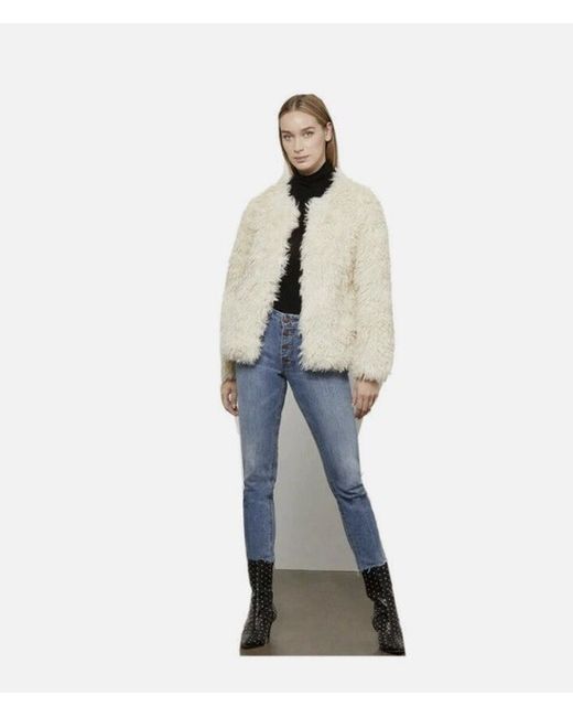 Made from Mongolian faux fur with a collarless design. The jacket is in size small and is suitable for regular-sized women. New with tags still attached