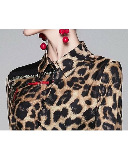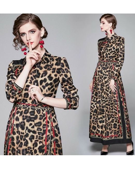 The brown, black, gold, and red colour combination on the polyester blend fabric give a runway-inspired designer touch to this dress.