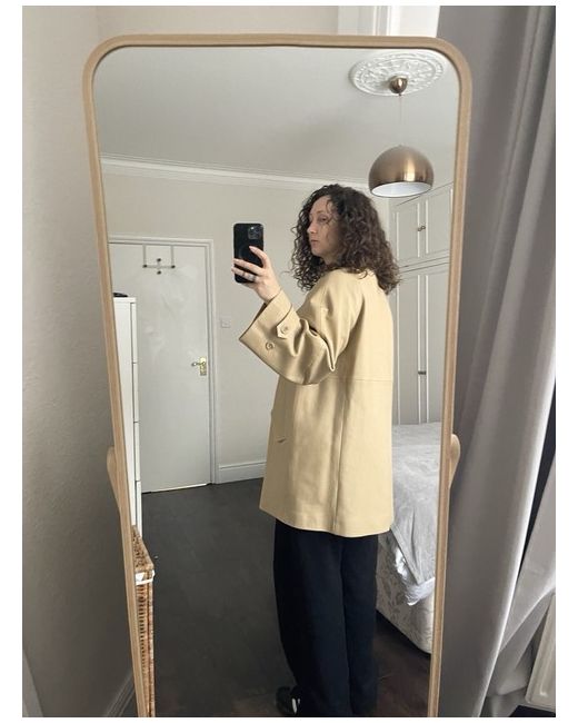 Experience the fusion of modern design and timeless style with the Arket Leather Short Trench Coat in a versatile beige hue. Crafted with impeccable attention to detail, this coat is a testament to Arket's commitment to quality and aesthetic. The relaxed fit ensures comfort without compromising on elegance, making it an ideal choice for a range of occasions. This medium-sized women's trench features a sleek leather outer shell, long sleeves, and a convenient button closure that adds a classic touch to the overall minimalist silhouette. Whether you're navigating the urban jungle or attending a casual event, this coat is designed to enhance your ensemble with its understated sophistication.