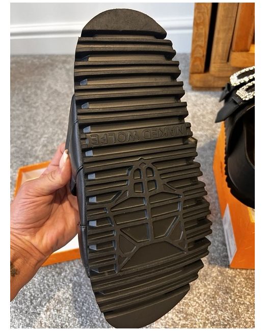 Add a touch of nature to your shoe collection with these Naked Wolfe Leather Sliders in size 7. The wolf theme is perfect for the adventurous woman who wants to make a statement. These sneakers are made from high-quality leather, ensuring durability and comfort. The brand Naked Wolfe is known for its stylish and unique designs, and these trainers are no exception. They are perfect for any casual occasion, and the comfortable fit will keep you feeling great all day long. Don't miss out on this opportunity to add a touch of wolf to your shoe collection.