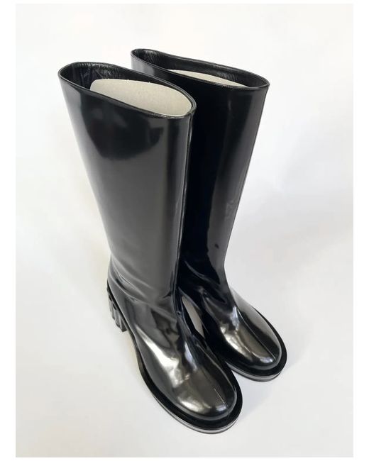 Women's Black Leather Lacquered Heel Boots EU 39 UK 6 US 8.5