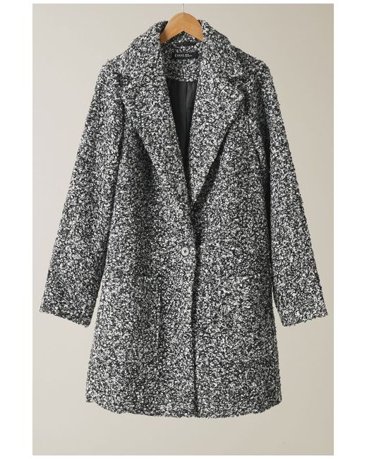 Fit & Fashion Notes: Welcome a new silhouette to your outerwear collection this season. Crafted from a woven boucle fabric, this coat will ensure you stay warm this winter. It features notch lapels, two front pockets, button fastenings and long sleeves. Layer over a new season knit for a sophisticated look you'll love. Why We Love It: A timeless coat you'll be wearing on repeat.