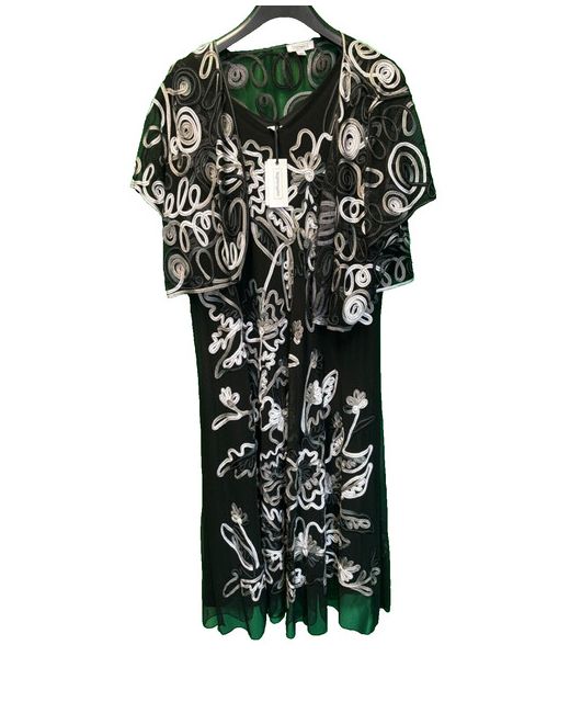 This stunning Nightingales dress in size 30 with matching shrug is perfect for a variety of occasions. The sleeveless, fit and flare style is flattering on any body type, while the long length adds a touch of elegance.