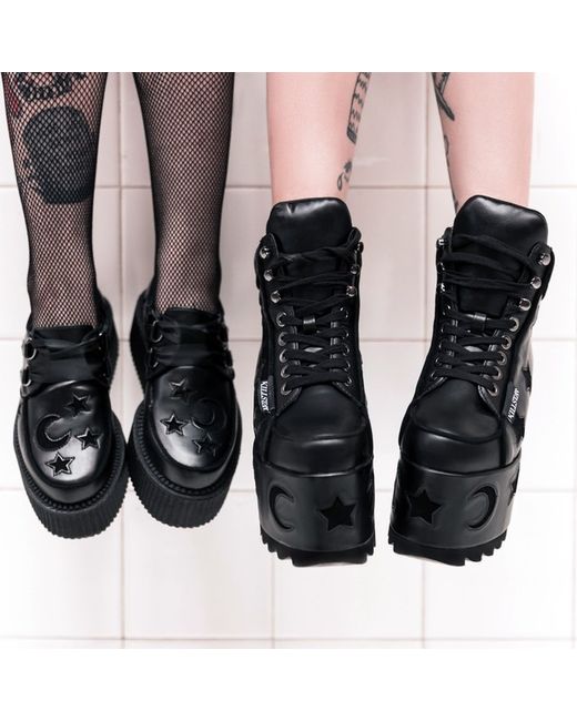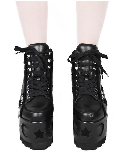 KILLSTAR Moonlight Malice Black Platform Trainers Stars Moon Goth Witch Occult Wicca. These ankle boots boast a round toe shape, tie closure, and a ultra high platform heel that's perfect for any occasion - from casual outings to parties and even travel.