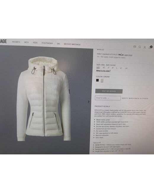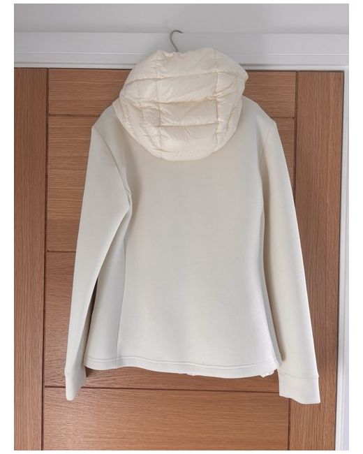 The front of the jacket and hood are quilted down filled, whilst the sleeves shoulders and back are double faced jersey. Size large which is a UK 12.