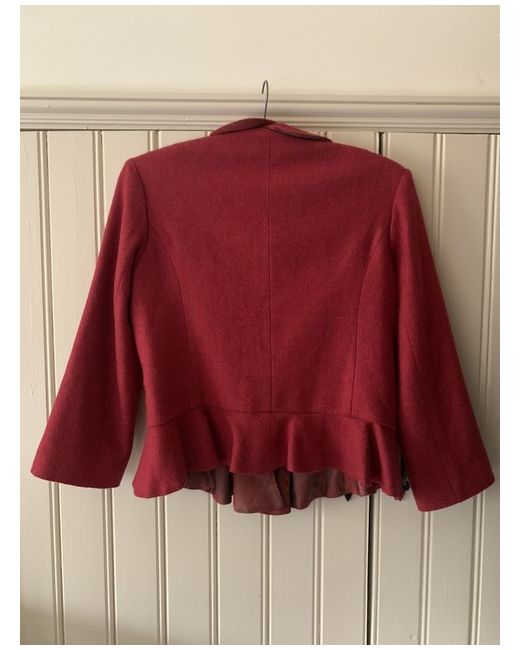 Cabbages & Roses Red Wool Cropped Jacket Lovely little fitted wool jacket from Cabbages & Roses Size 10 New without tags 100% wool Made in London Cropped style 3/4 length sleeves Button front Frill hem Peter Pan collar Fully Lined Faux pockets Slightly shorter at the back Spare button attached