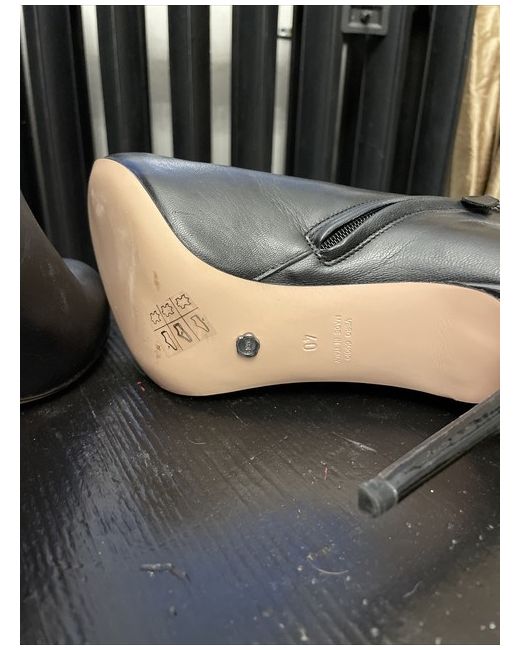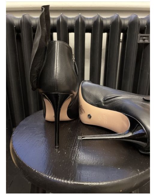 viktor & rolf black statement boots, size 40/uk7. Black leather with ruffle side and patent heels