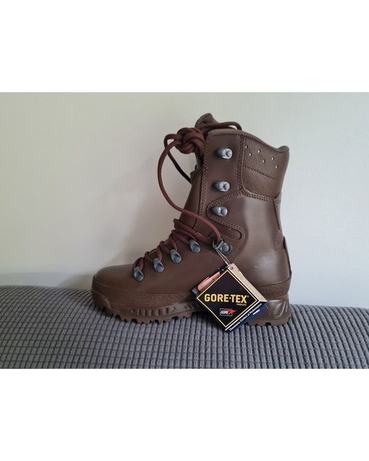 The product is a pair of women's HAIX army boots in UK size 5 (US size 6). Made of brown leather, these standard width boots are perfect for all weather occasions. These boots are designed for comfort and durability.