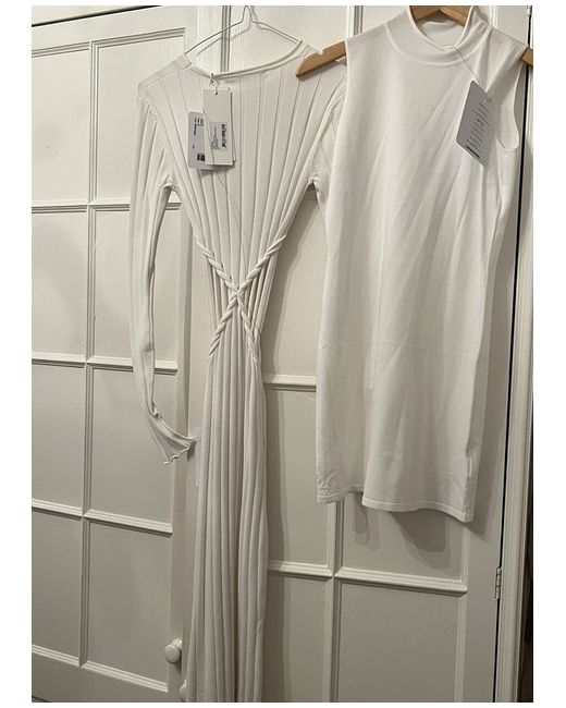 dion lee white dress Size M You can wear it without the top under for more glamorous skin revealing or you can wear it on top of the top for a day cool look . The material is elastic so it can easily fit both size small as well as medium . New with tags . Over £1000 initial price